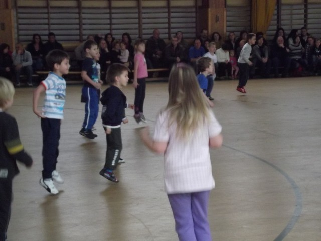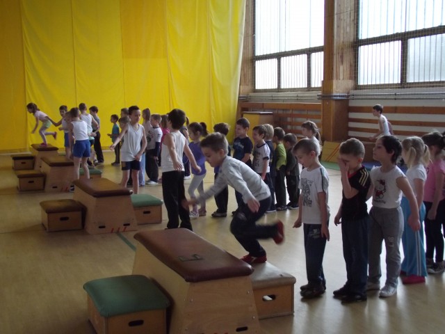 Január 12-én tartottuk a második "ISKOLABEJÁRÓ" programunkat. Iskolánk tornacsarnokába hívtuk a mozogni és táncolni szerető ovisokat. Sokan éltek a lehetőséggel, s örömmel vállalták Máthé Csaba testnevelő játékos feladatainak megoldását. A közös bemelegítés után az ügyességet, gyorsaságot, egyensúlyérzéket is igénybe vevő gyakorlatokat nagy kedvvel végezték a gyerekek.