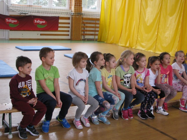 A bemelegítő játék után 2 csoportba osztottuk a gyerekeket. Eszti nénivel testnevelési játékokat játszottak a gyerekek, ahol az ügyesség és a gyorsaság volt a legfontosabb. Gergő bácsival körjátékot játszottak az ovisok. Az érdekes játékok eléneklése és eljátszása jó kikapcsolódás volt szombat délelőttre. A húsz percig tartó foglalkozások után cseréltek a csoportok, így mindenki mind a két foglalkozáson részt vett. Mivel a gyerekek nagyon aktívak voltak, a játék végére kellemesen elfáradtak.