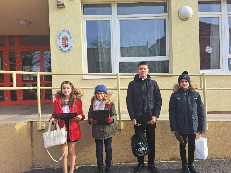 A Kazinczy Ferencről elnevezett „Szép magyar beszéd” verseny iskolai fordulóján kiemelkedő helyezést elért diákjaink továbbjutottak a tankerületi döntőbe, amelyet a Celldömölki Városi Általános Iskolában rendeztek meg. Az 5-6. évfolyamosok közül Horváth Levente és Járomi Hanna, a 7-8. osztályos tanulóink közül Varga Luca és Fider Péter állt a rangos szakmai zsűri elé. A versenyző diákoknak egy szabadon választott szöveg felolvasása után egy kötelező szöveggel kellett bizonyítaniuk felkészültségüket. A nívós tanulmányi verseny az ifjúság anyanyelvi nevelését, a beszédkultúra javítását szolgálja. Nyolc intézményből érkeztek versenyzők a tankerületi megmérettetésre, akik közül Fider Péter 8. a osztályos tanuló különdíjban részesült. Felkészítő tanára: dr. Horváth Péterné.