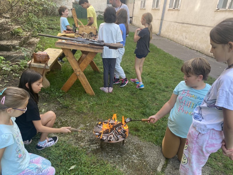 Élő interaktív történelemórát tartott Szibler Gábor, aki elvarázsolta a gyerekeket. Megismerték a korabeli fegyvereket majd meg is foghatták, kipróbálhatták azokat, sőt a korabeli pénzek másolatát is kézbe vehették a nebulók.